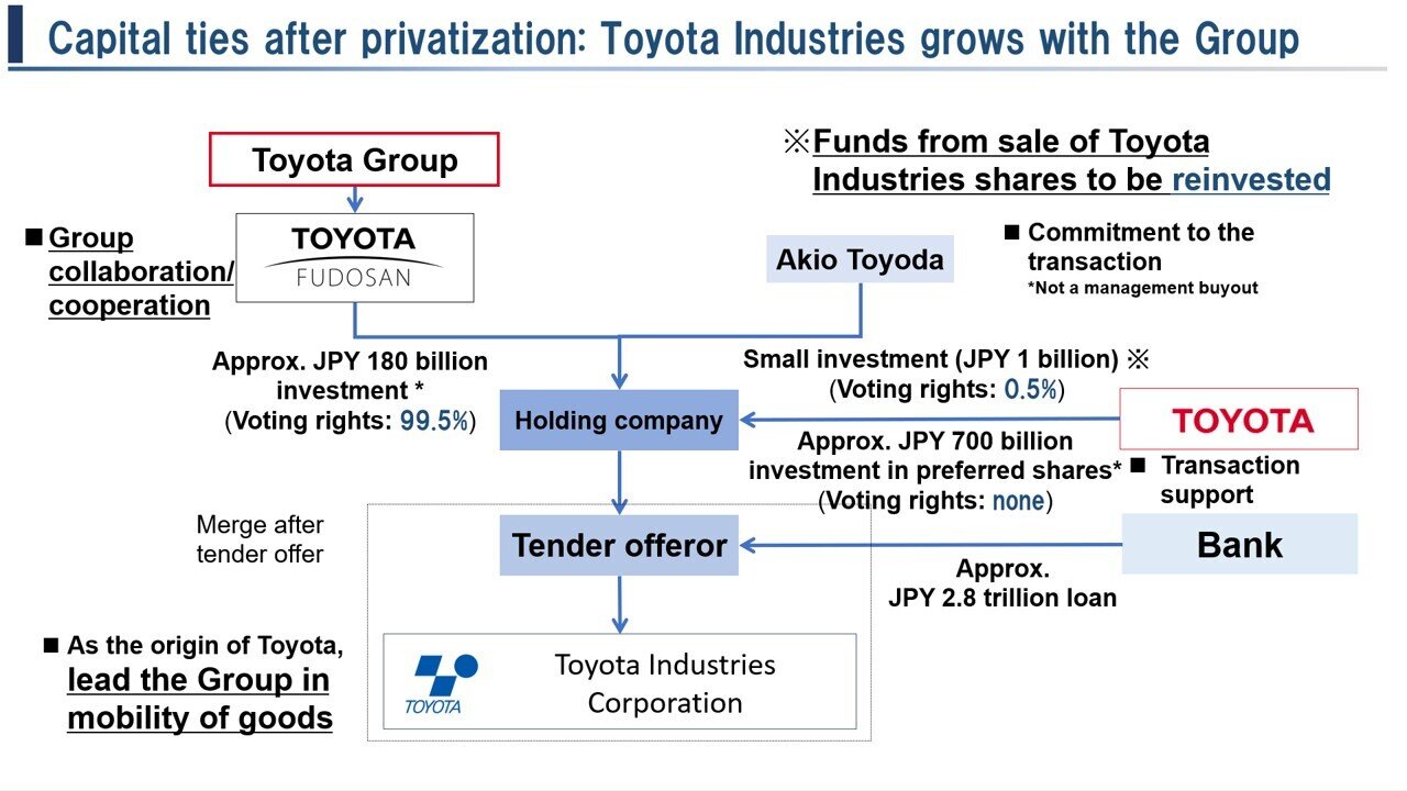 To facilitate the takeover bid, a new holding company will be established. Toyota Fudosan, whose shares are held by Toyota Group companies, will invest approximately 180 billion yen.