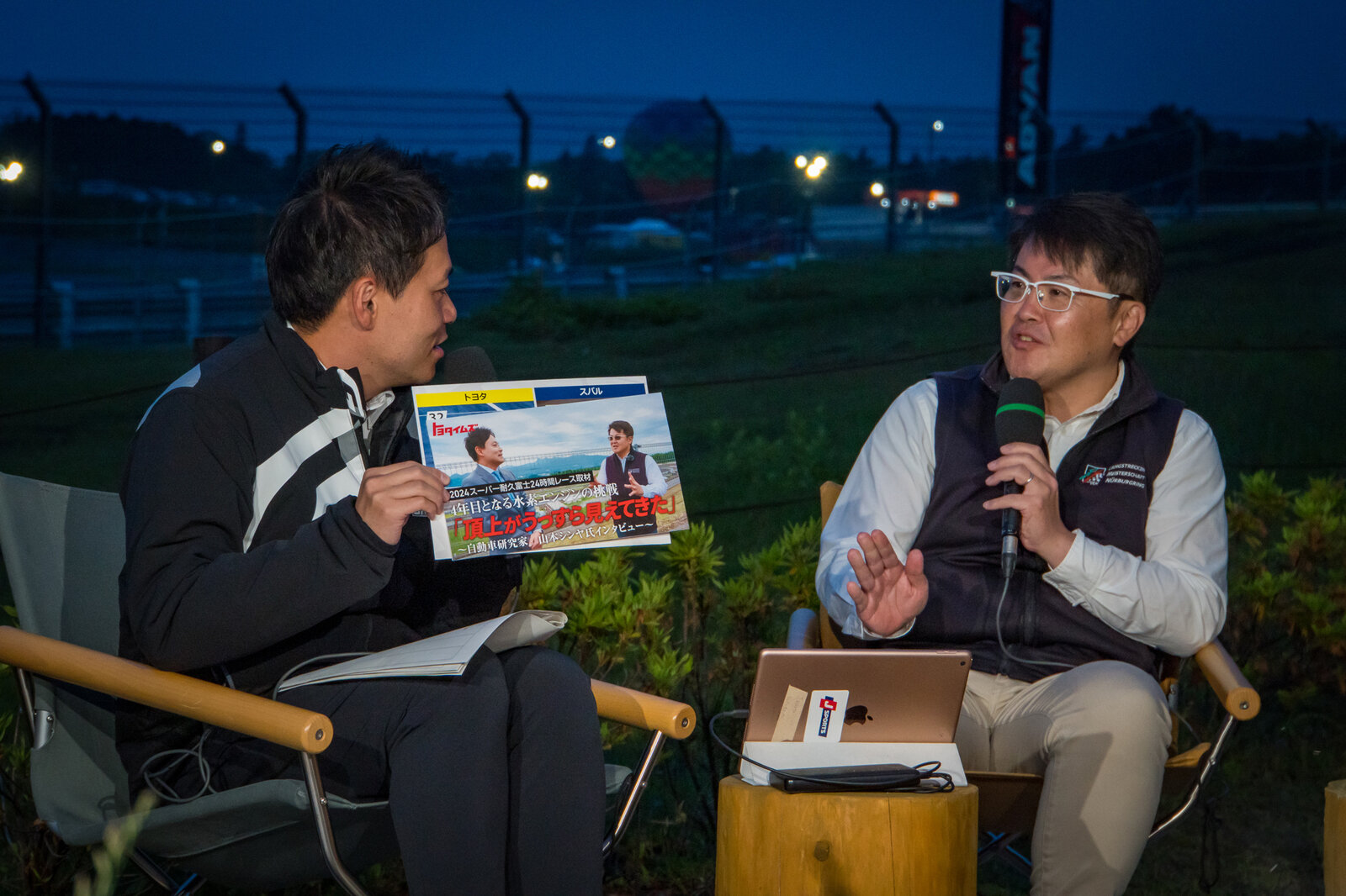 This time, we gathered again after dark, sitting around a fire in the Fuji Speedway camp area. Automotive journalist Yuki Imai also joined the festivities to discuss how to cultivate a motorsports culture.