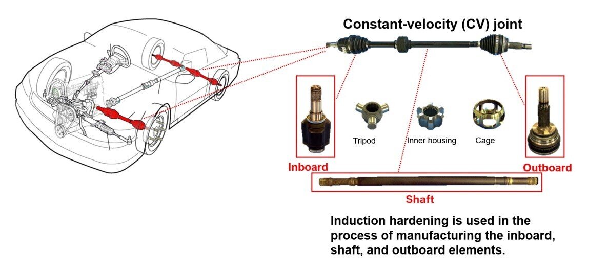 Constant-velocity (CV) joints, which transfer the engine’s power to the wheels, have various components including the inboard joint, the shaft, and the outboard joint. The manufacturing processes for these parts include a heat treatment step called induction hardening. This is where the coils come into play, and Toyomaki is in charge of keeping them operational.