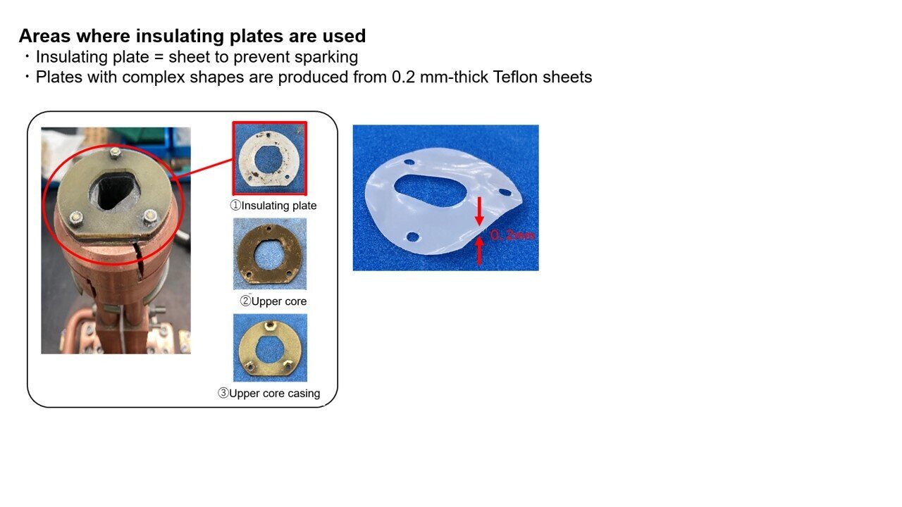 Induction hardening coils contain insulating plates that vary in shape for each different coil type, and these must be prepared anew whenever refurbishment work is undertaken. The plates come in a range of sizes and thicknesses, with some created out of 0.2 mm Teflon sheets.