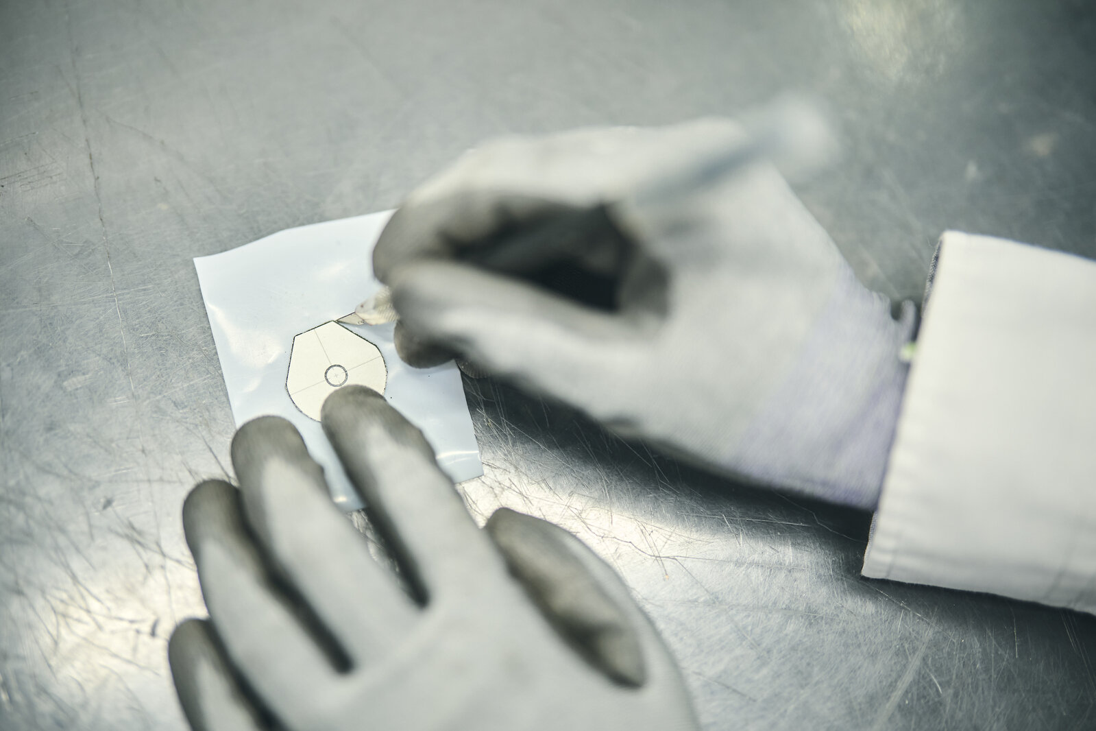 Previously, the plates were made by hand as shown below, a task made difficult by the thin Teflon sheets, the tiny cutouts required, and the complex shapes.