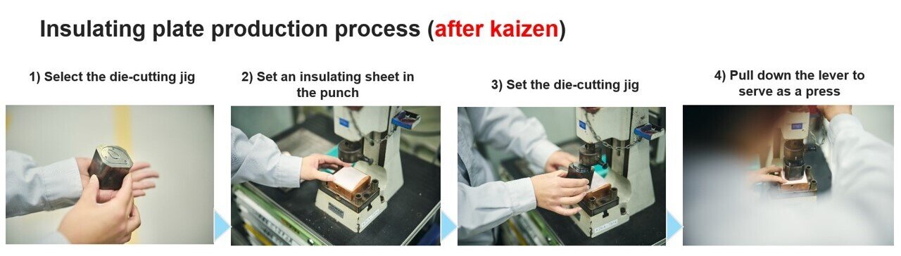 Toyomaki’s insulating plate punch received the top award within the Creative Idea Suggestion System and was even mentioned by President Sato during a New Year’s message to Toyota employees.