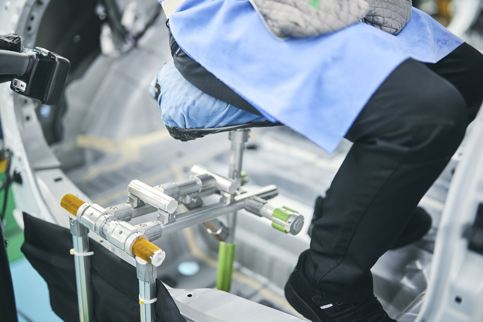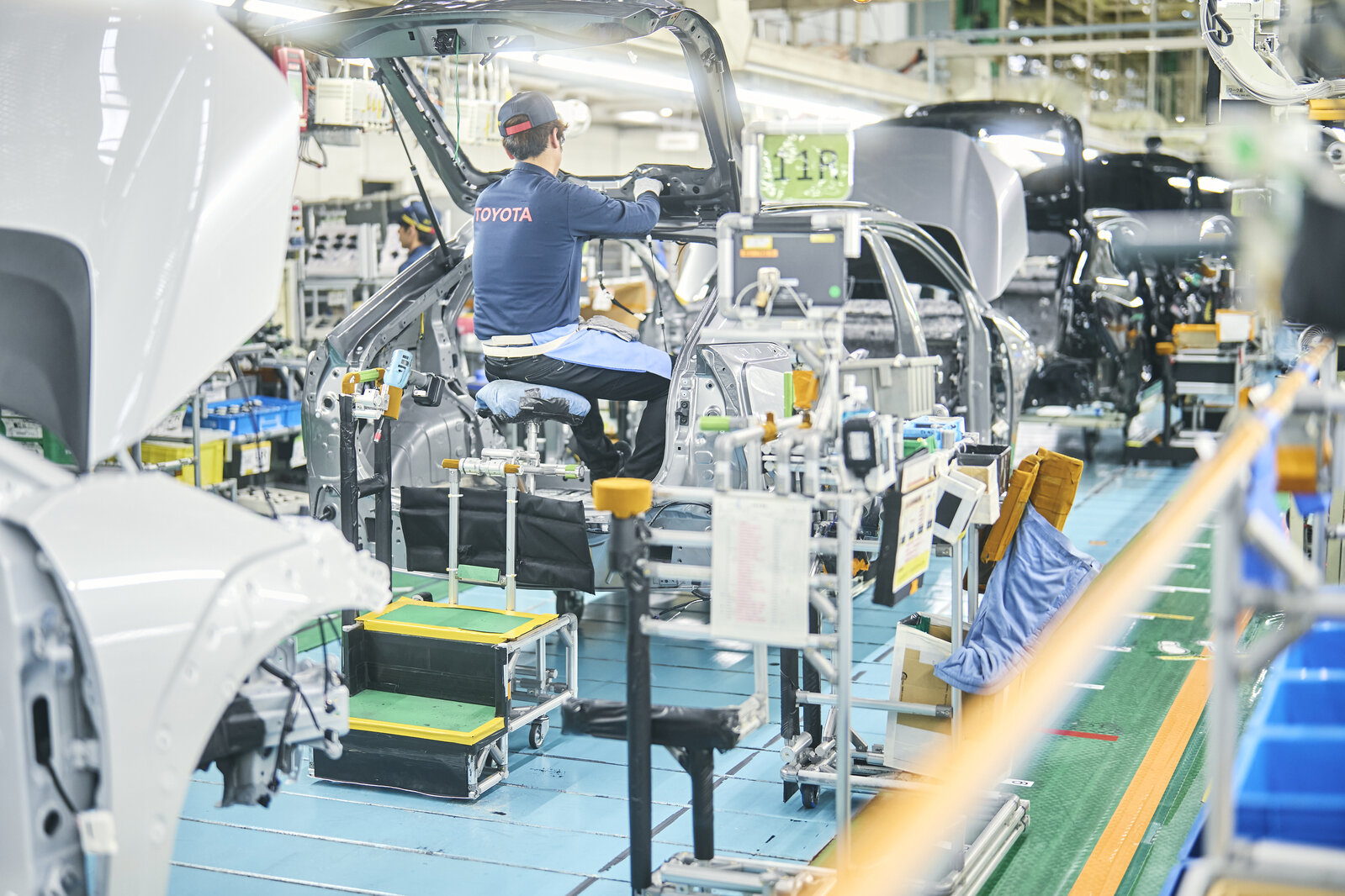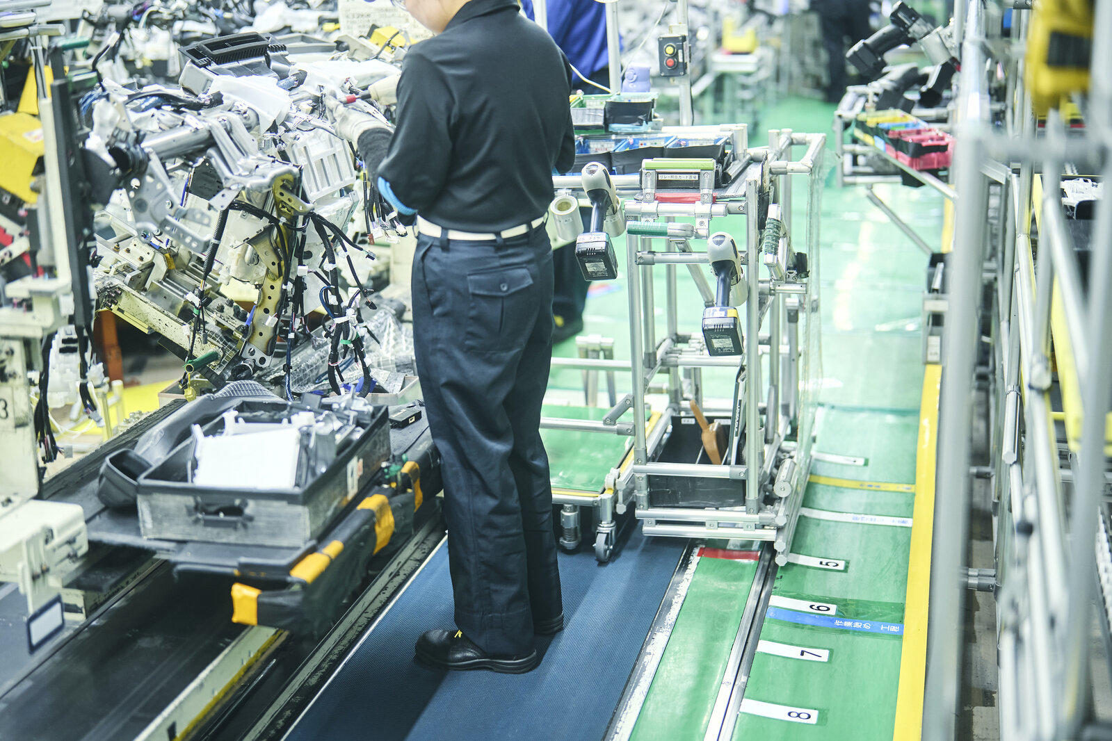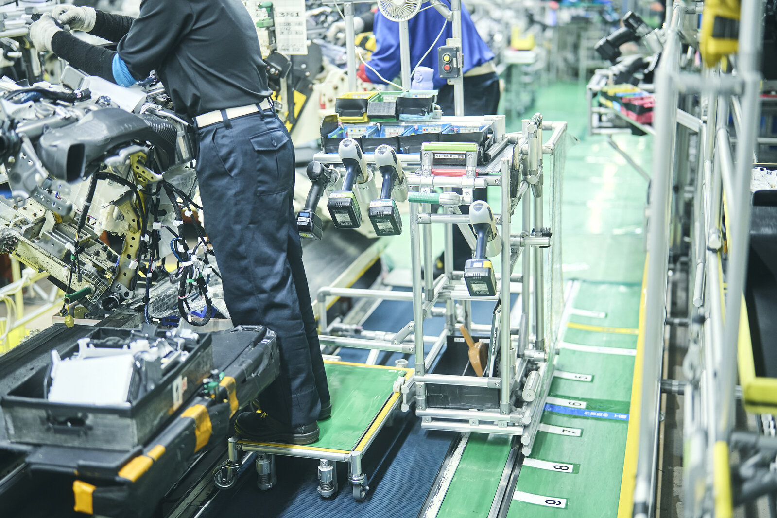 This one can be found in another section of the Motomachi Plant, where back door wiring is installed. For some models, this process involves running various wires through the car’s interior. In the past, male employees had to contort their bodies into awkward positions to carry out the task.