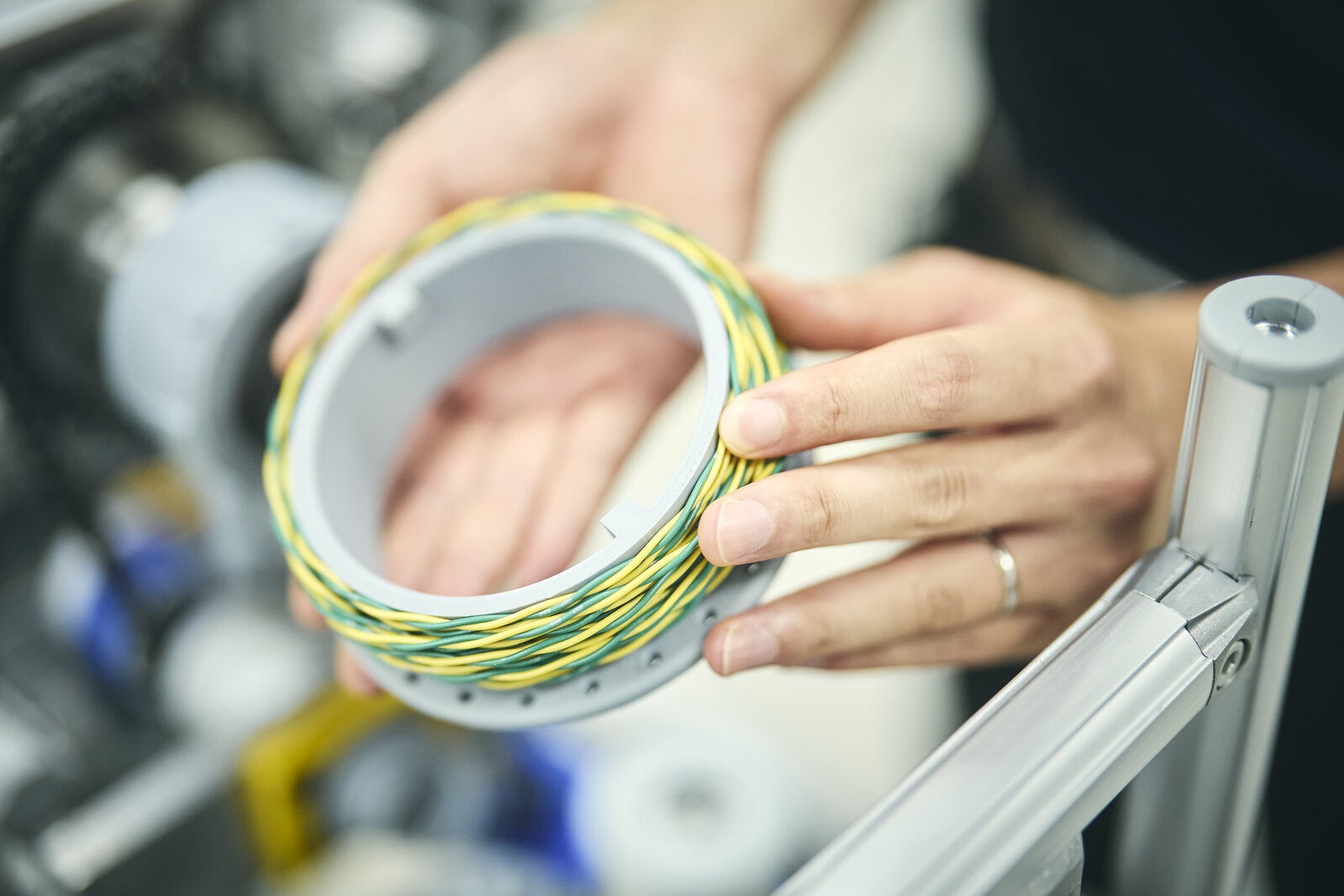 The team uses cables ranging from one to five meters in length. Thirty rotations per meter is considered optimal twisting, but the work is done with eyeball estimates.