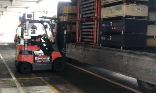 Since their trucks are unable to enter the plant, drivers must switch to forklifts to unload each shipment.