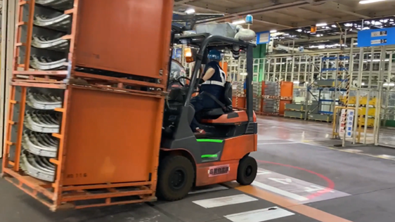 The photo above shows parts that will be welded together to create vehicle body frames. Before arriving here, these components are delivered to the plant’s yard by logistics contractors.