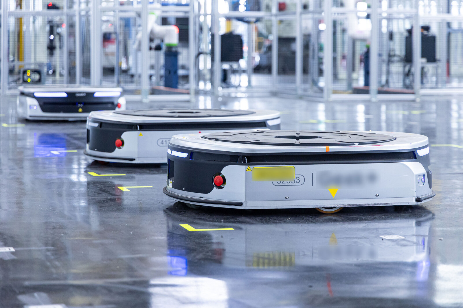 Onboard sensors automatically ensure that the robots avoid collisions with other AMRs or obstacles.