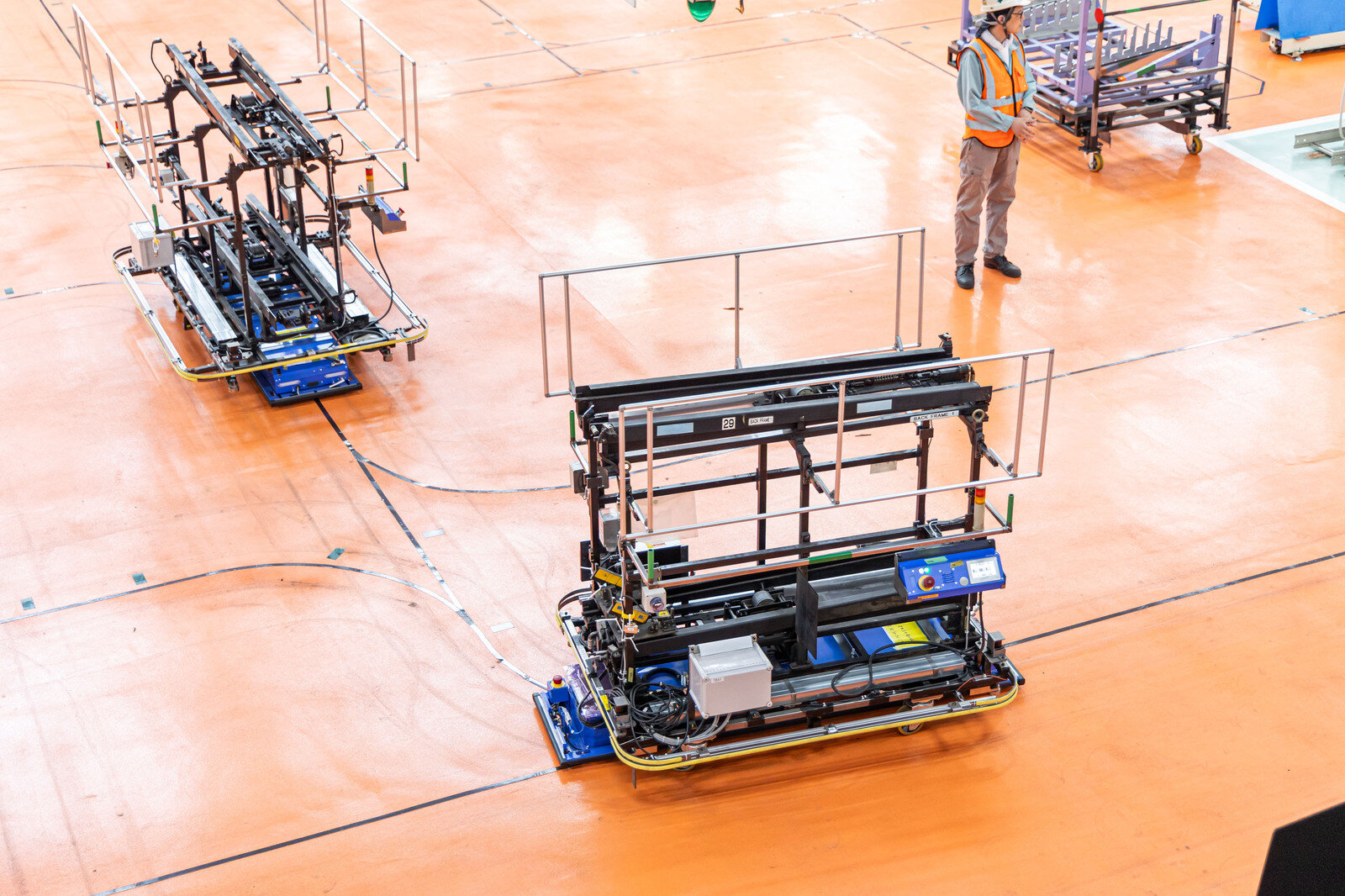 Once the parts are inside, the plant’s logistics personnel use transporter vehicles to deliver them to the appropriate sections. This setup requires both the truck drivers and logistics staff to travel back and forth through the vast plant.