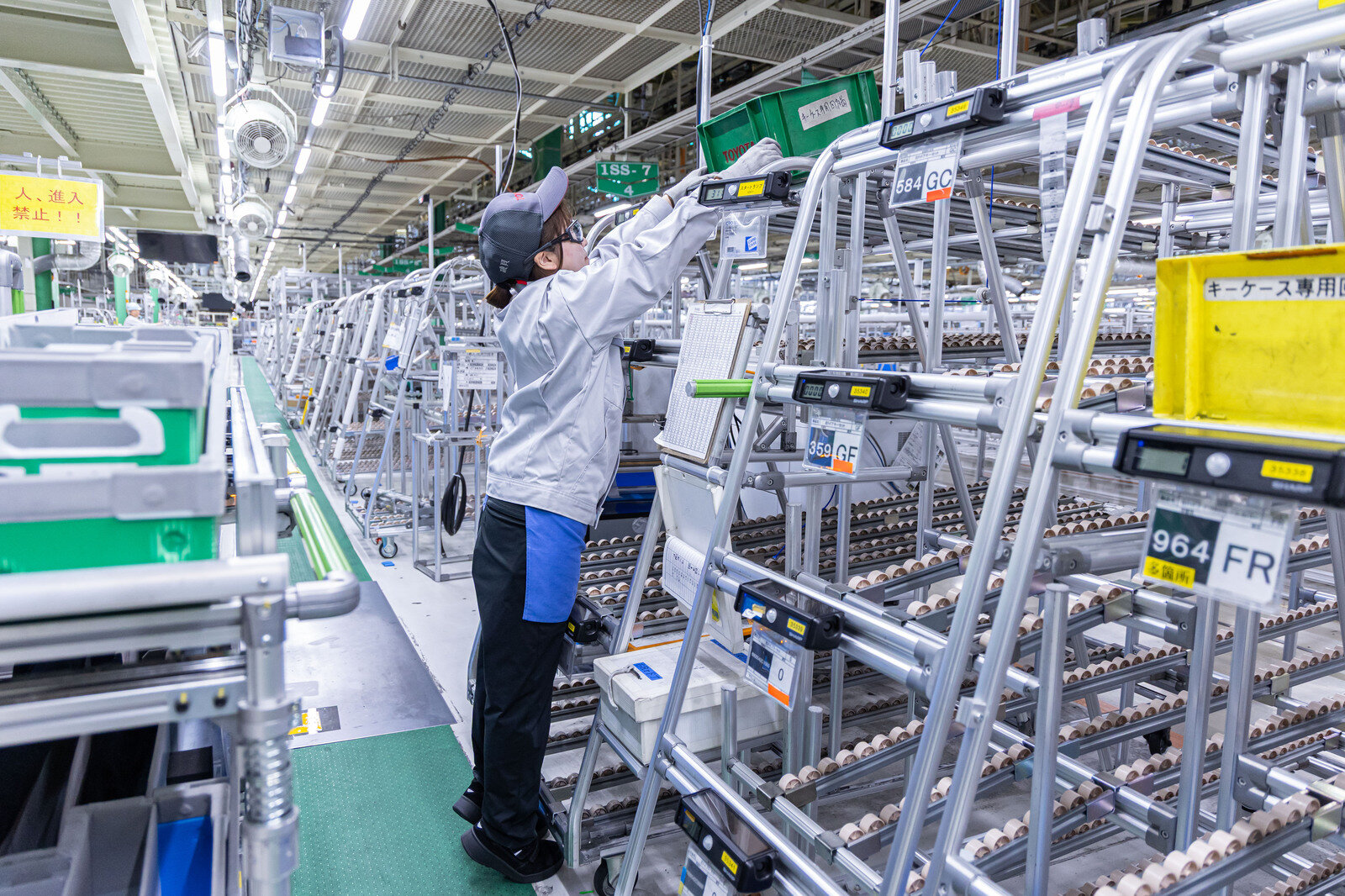 Previously, line workers had to search for and retrieve what they needed from the racks of components. In a single day, they would walk as much as 15 kilometers. Thanks to THDS, that figure has fallen to around 2.7 kilometers. Pick-up points are also set at heights that can be easily reached by all staff.