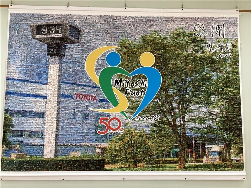 This clock tower has come to symbolize the Miyoshi Plant. It is also depicted in the mosaic art created when the plant marked its 50th anniversary.