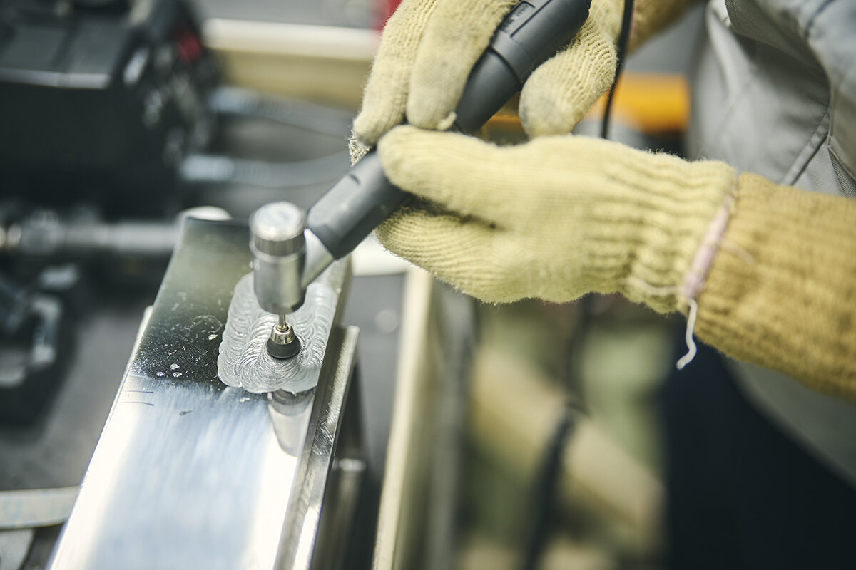 With the polishing work stretching out to 800 hours, the physical toll became a major issue. In particular, holding abrasive stones while polishing places a heavy strain on the fingers and wrist.