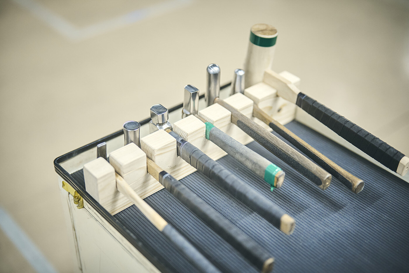 An important factor that underpins Maeda’s abilities is his meticulous care for his tools. The hammers he uses are off-the-shelf products, which he then customizes precisely to suit his needs.