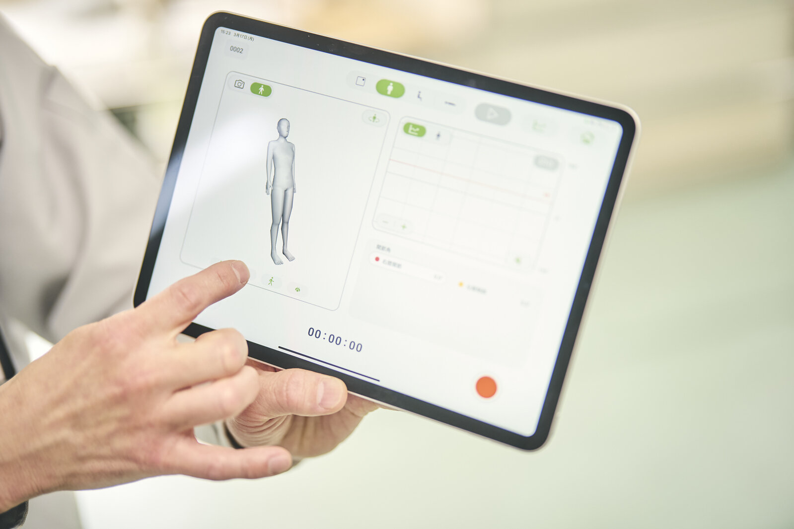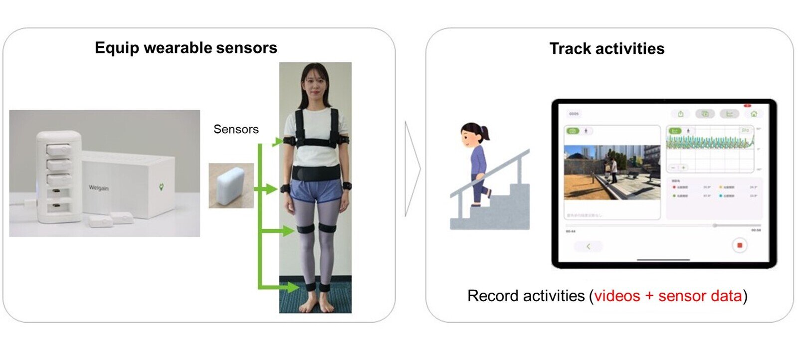 Welgain makes it possible to check a person’s movements on a tablet via sensors fitted on the body. The wearer’s motions and joint angles can be measured in real-time without requiring multiple cameras.