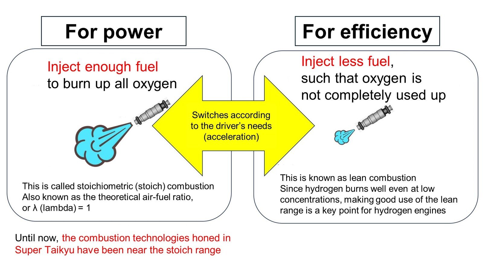 To achieve race performance on par with gasoline, the team has thus far continued to refine technologies for stoichiometric combustion, which delivers more power.