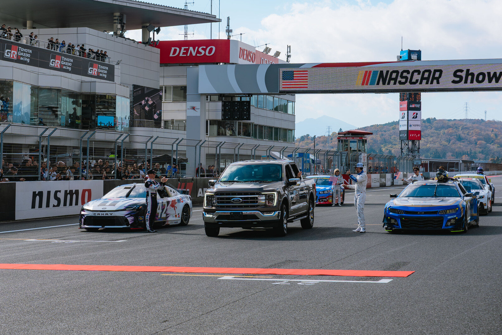 The NASCAR Showrun preceded the main Super Taikyu race. As the six cars took their place on the starting grid, a Ford F-150 pickup truck wove through the lineup.