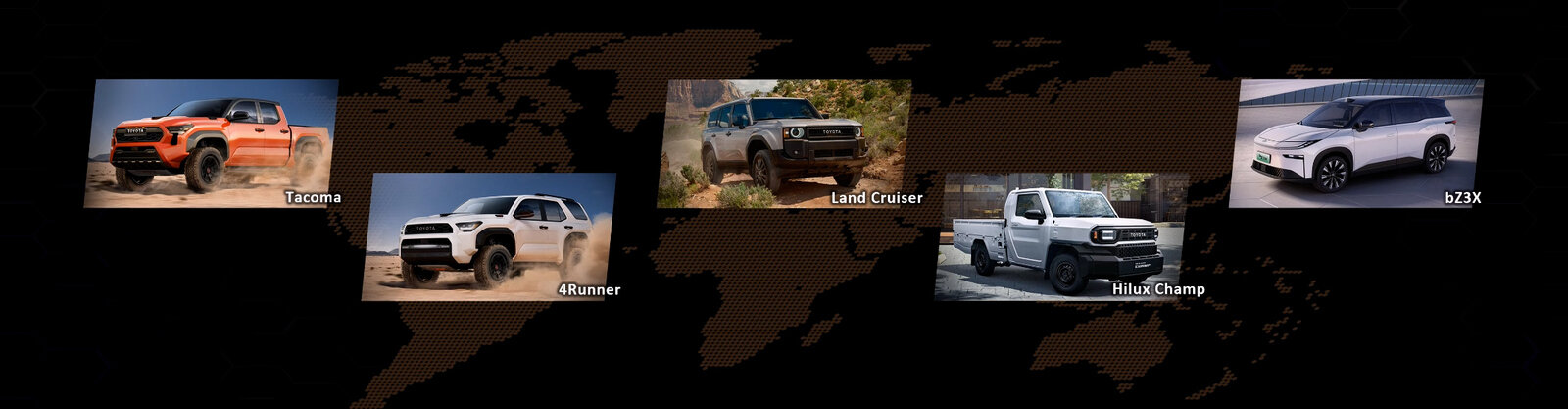 From the trust that Land Cruiser represents to people all over the world...to the personalization that Hilux Champ offers people in Southeast Asia...from the ultimate excitement of the Tacoma and 4Runner in the US...all the way to the sophistication of the bZ3X in China...