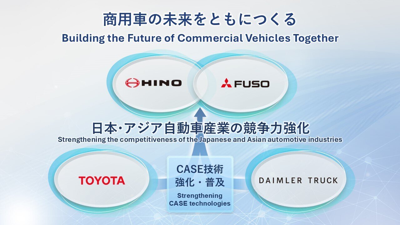 Going forward, the two companies will work together to strengthen their business bases in Japan and Asia, and Daimler Truck and Toyota will support the integrated company in improving its competitiveness, based on CASE (Connected, Autonomous, Shared, Electric) technologies.