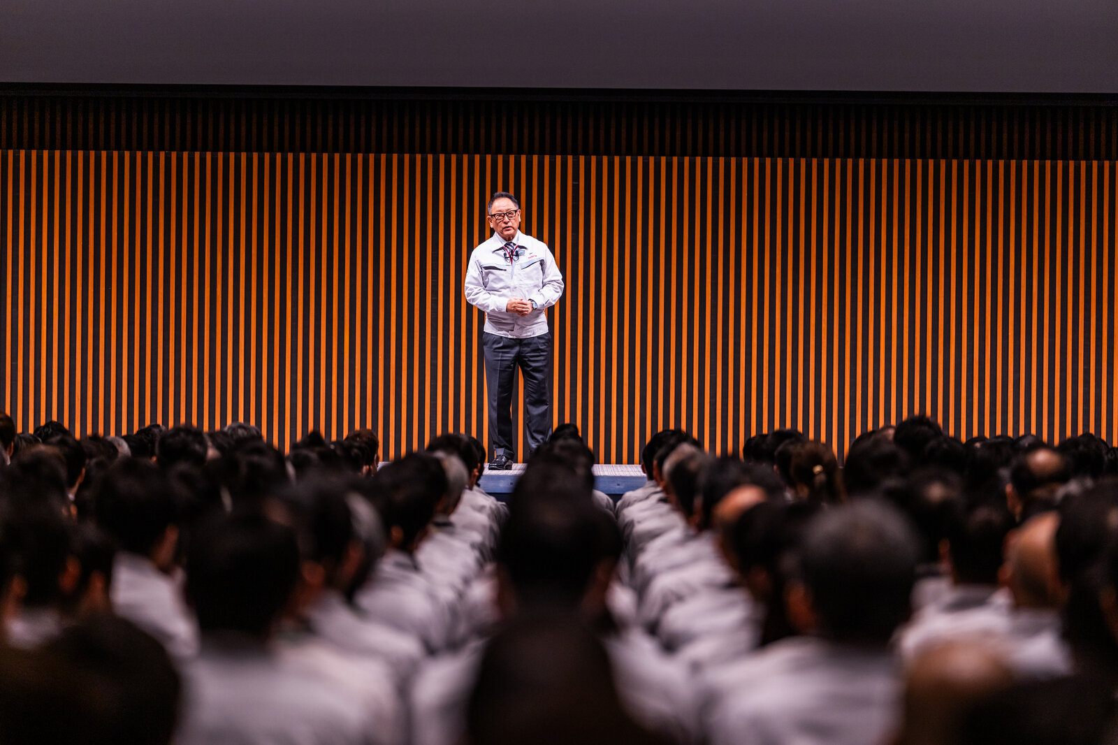 The successor, passing on the baton to the next generation. After offering encouragement to President Sato and his leadership team, Chairman Toyoda then addressed the Toyota colleagues present in this “ba.”