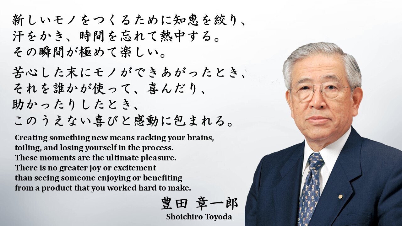 Let me share, as a word of encouragement, the words of Honorary Chairman Shoichiro Toyoda.