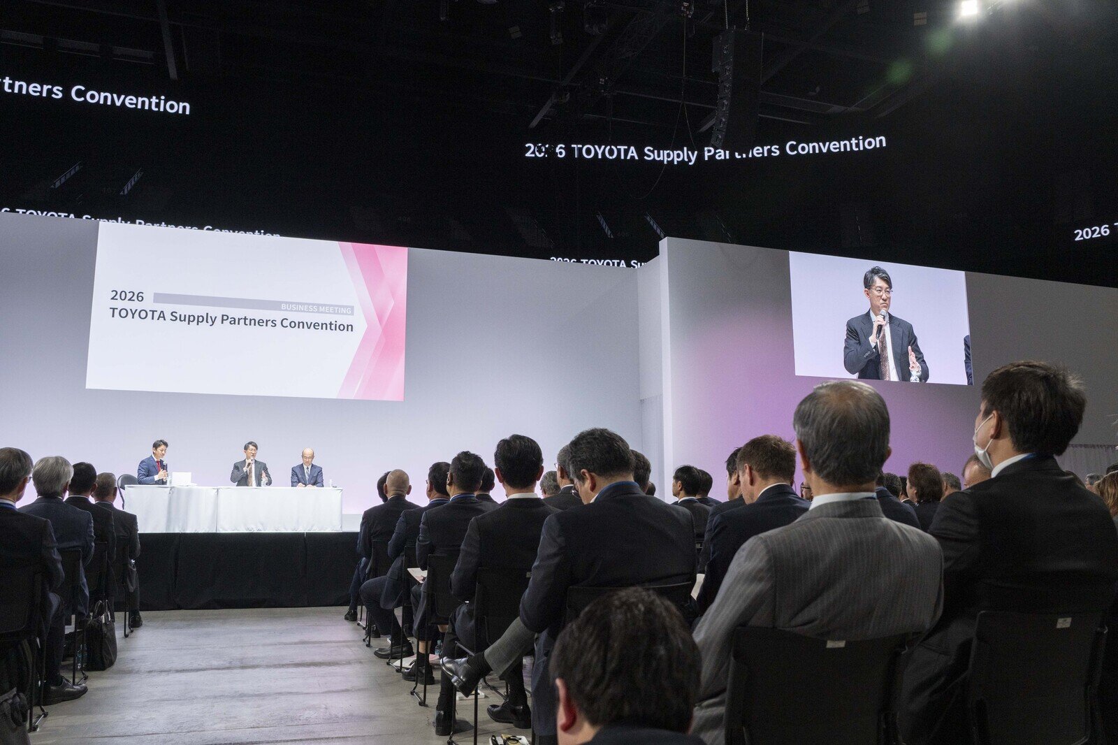 More than 700 supplier leaders from around the world gathered at the 2026 TOYOTA Supply Partners Convention. After remarks by President Koji Sato and incoming President Kenta Kon, the event moved into a Q&A session.