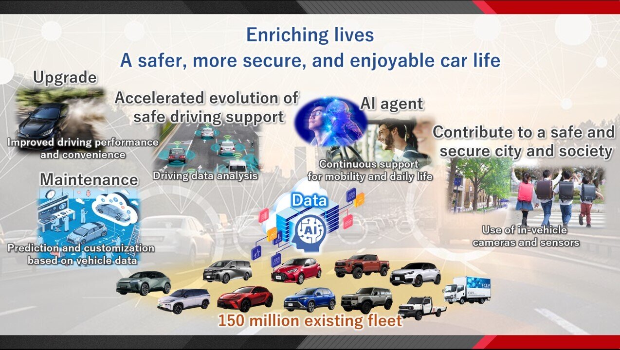 For example, we intend to materialize the diverse values that data and AI will create, such as data-based vehicle development and service evolution, AI agents that grow together with customers, and services that utilize on-board sensors.