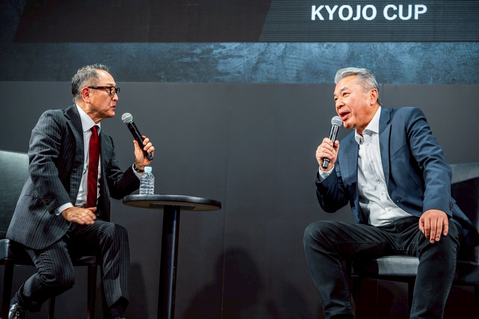 During the talk session, the chairman’s peers, driver Kamui Kobayashi and Vice Chairman Kazuki Nakajima, were waiting in the wings. Despite being in the “enemy territory” of the GR booth, the trio made a show of team unity by dressing in matching TR-logo shirts.
