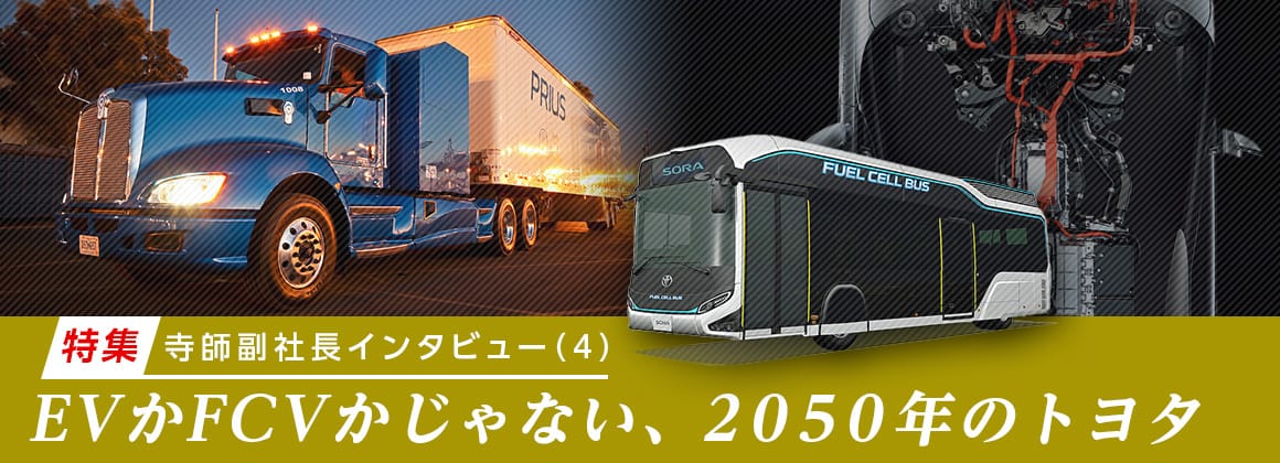 現在、トヨタが持っているFC(燃料電池)スタックはMIRAIに搭載される1種類だが、このスタックを使って排気ガスを出さない屋内作業に適したフォークリフトや、スタックを2台搭載した大型バスのSORAなど、FCVの適用範囲は広がっている。そのFCVはどのように発展していくのだろうか?