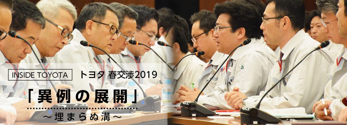 トヨタの労使交渉において、社長は組合と会社のどちらにも属さず、話し合いの行方を見守る「行司役」である。行司役である社長に対して、組合からコメントを求めるということはこれまでにない異例の展開である。