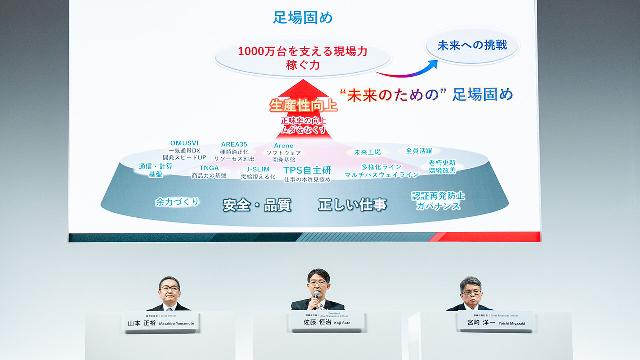 トヨタの2025年3月期決算説明会。佐藤恒治社長は足場固めの進捗とクルマの未来を変える挑戦のテーマを語った。そのスピーチ全文を掲載する。