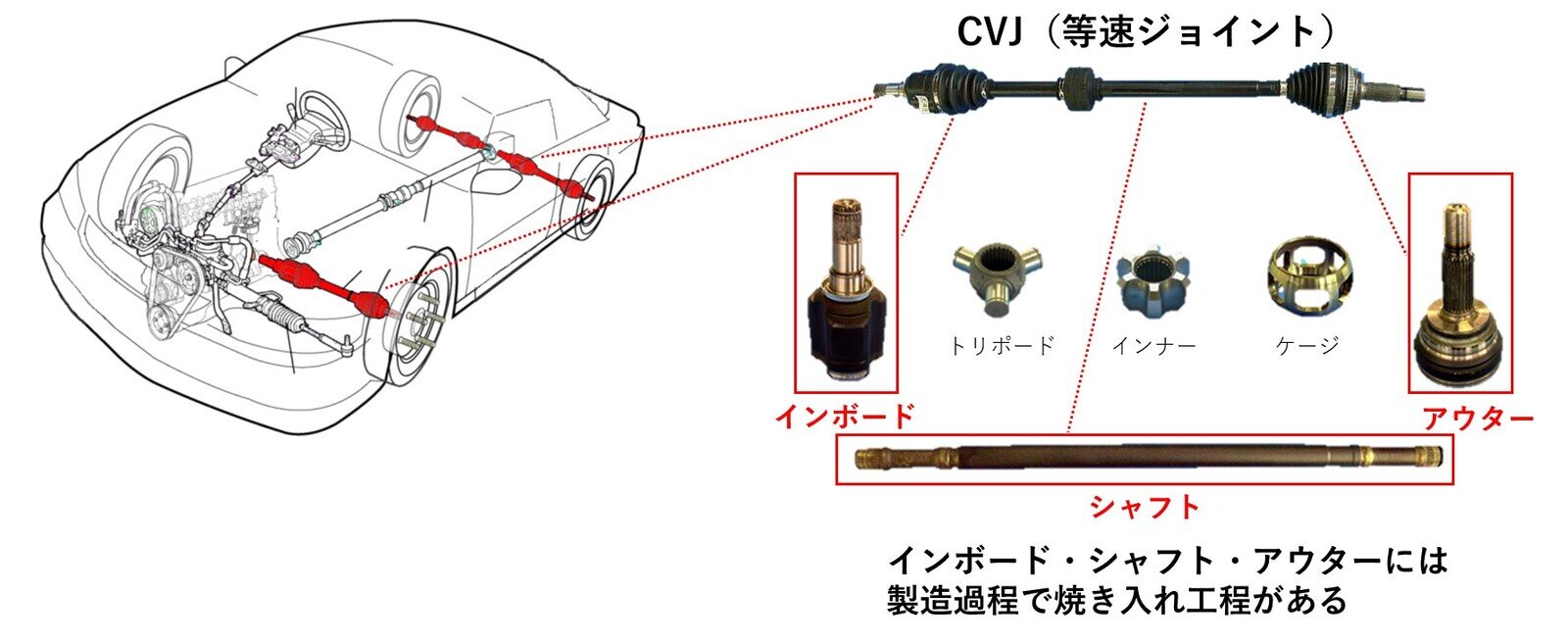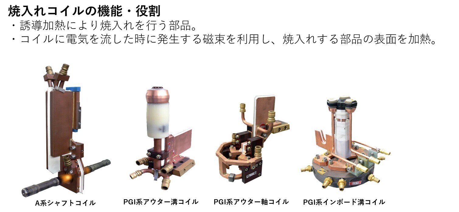 エンジンの動力をタイヤに伝える部品、CVJ(等速ジョイント)の構成パーツには、インボード・シャフト・アウターがある。その製造工程に高周波焼き入れという工程があり、その焼き入れをするのが「焼き入れコイル」。豊巻は、この「焼き入れコイル」の再生整備を担当している。
