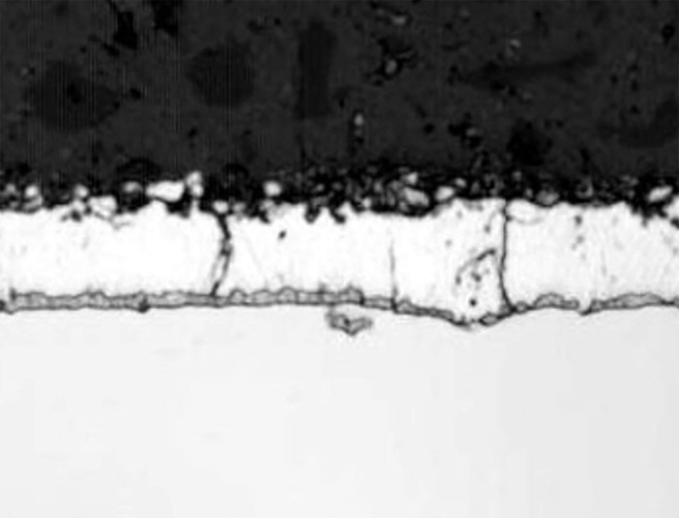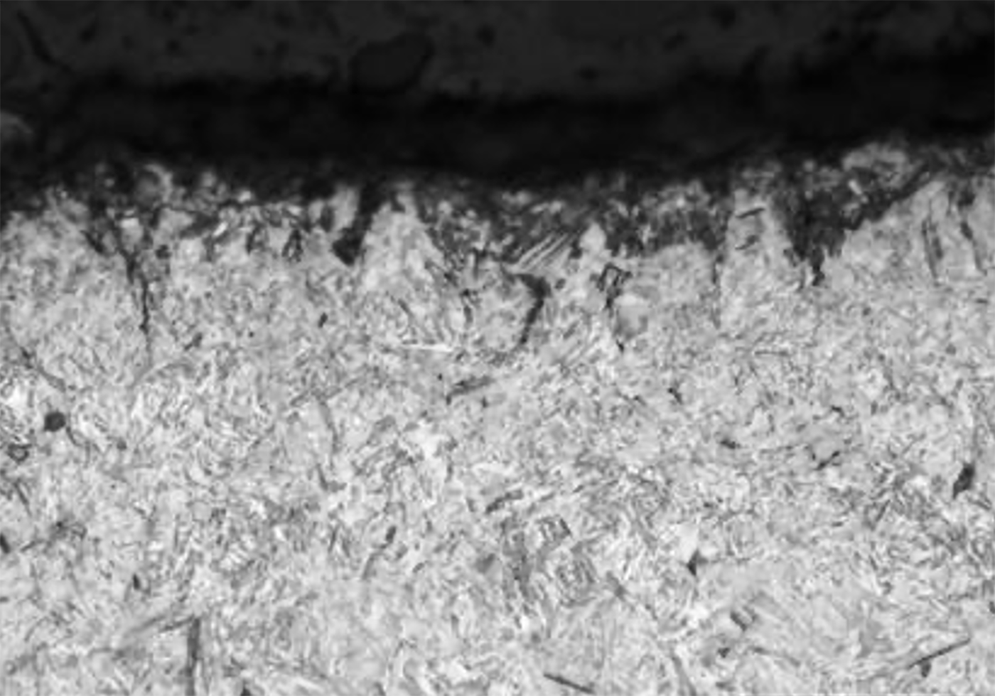 粒界だけを選択的に溶かすと、顕微鏡で見たときに線状に見える。凹んだ部分は影になって黒く見えるのだ。こうして初めて、金属組織が浮かび上がる。