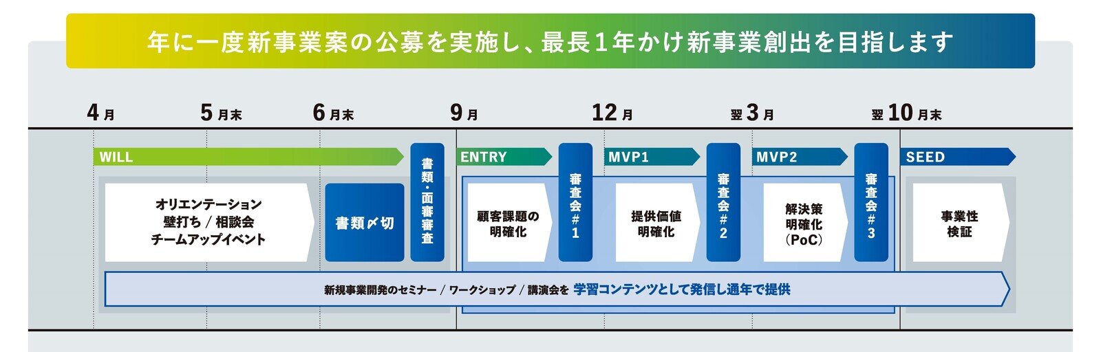 晴れて最終審査を通過すると、次は事業性検証のステージであるSEED期へ駒を進める。