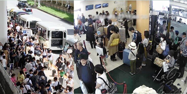夏休みなどハイシーズン。那覇空港の近くでクルマを借りようとすると、空港からの連絡バスで行列。さらにはレンタカー店舗でも長蛇の列が…。