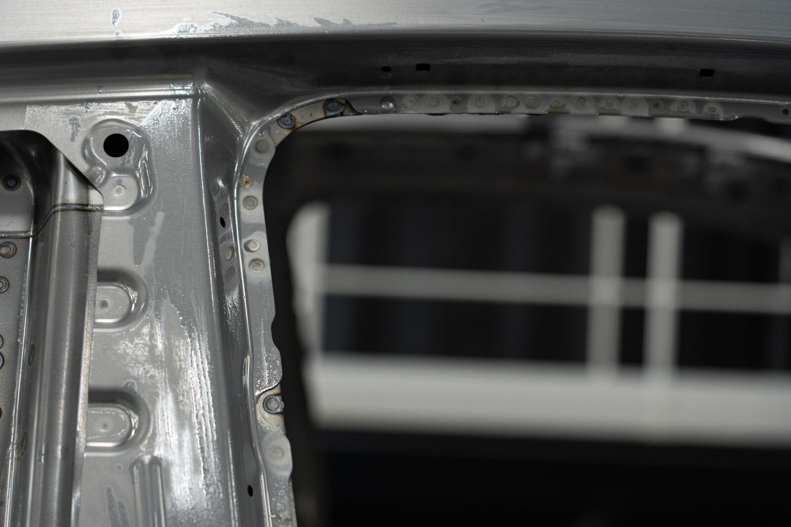 続いて、各部品を正確な位置で組み付けるため、メインボデー*をスポット溶接*で仮付けし、その後増し打ちを行うが、ここでもGRファクトリーならではのこだわりが。