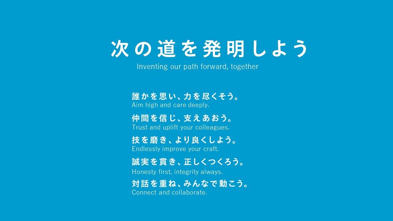 グループビジョン「次の道を発明しよう」は、英訳すると“Inventing our path forward, together.”。
