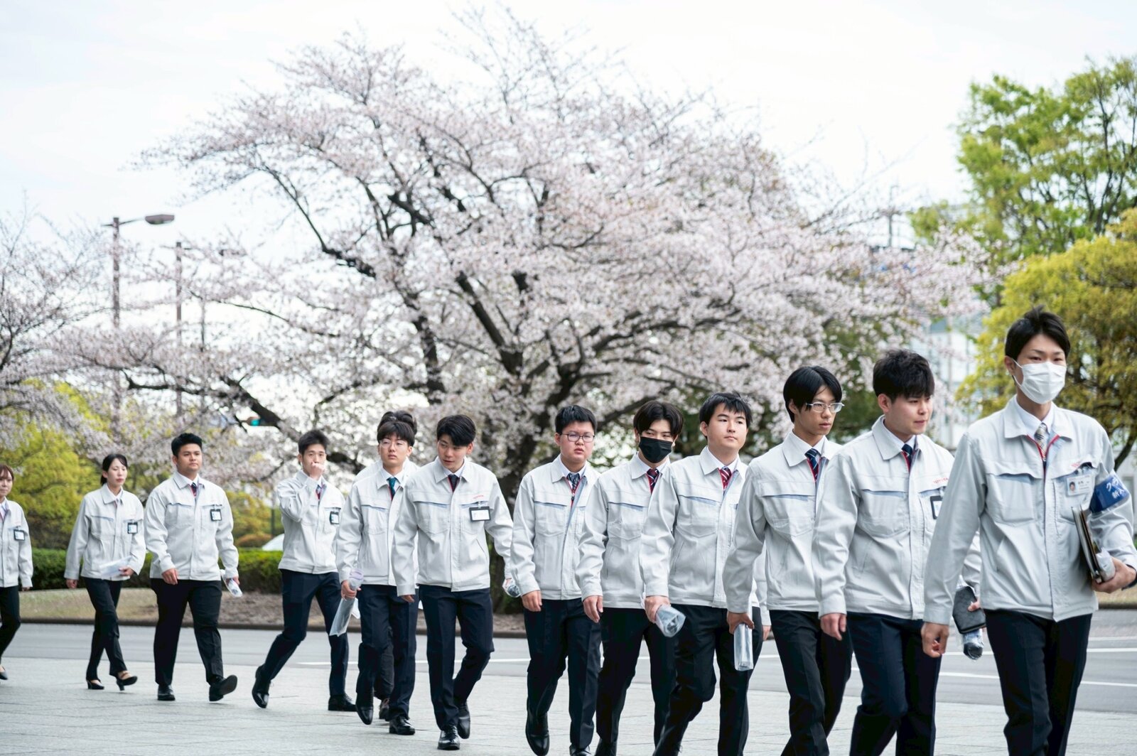 2026年4月1日、満開の桜が出迎える中、トヨタ自動車の入社式が本社(愛知県豊田市)で行われた。