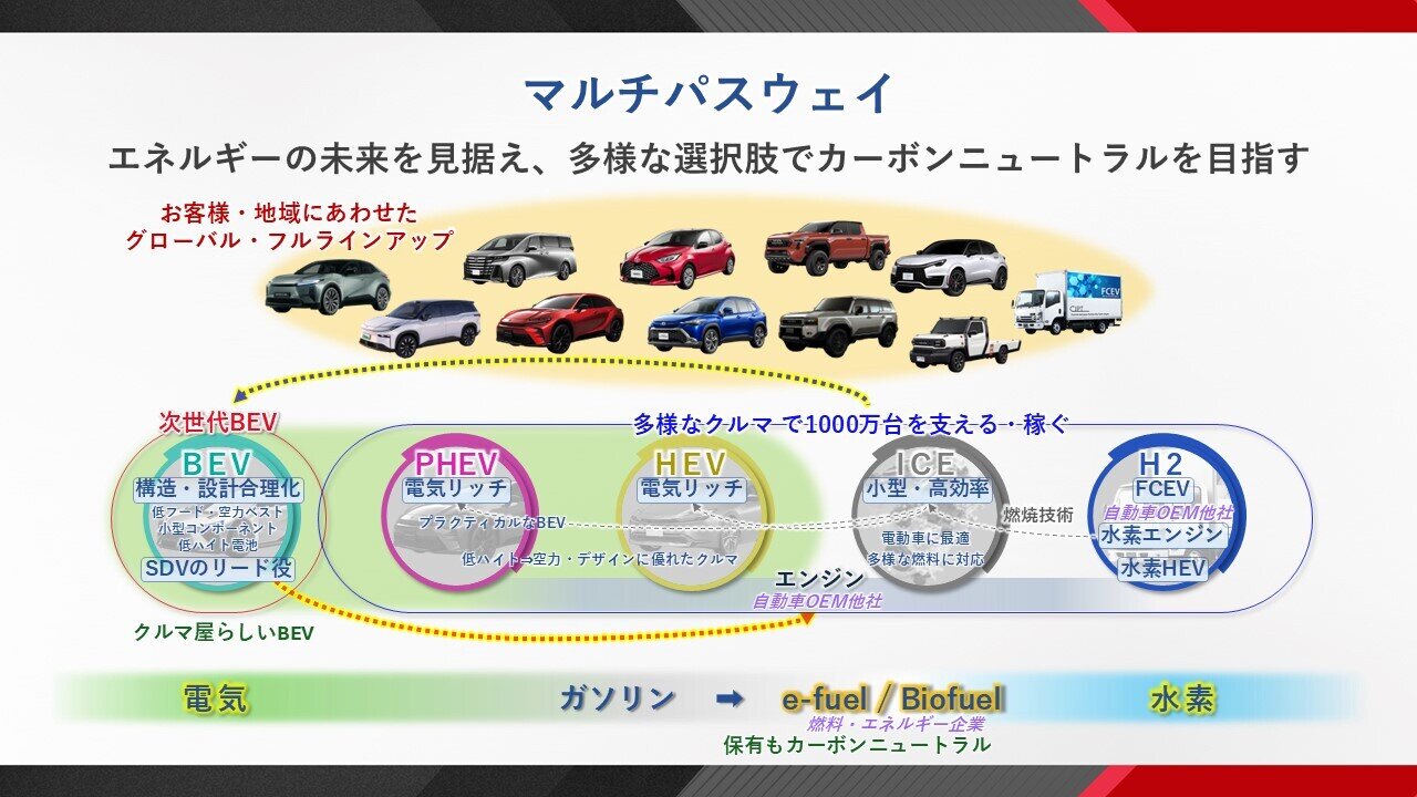 そして、それぞれのパワートレーンを真の選択肢とするために、多くの仲間とともに、燃料やインフラの進化を後押しする取り組みも進めてまいります。