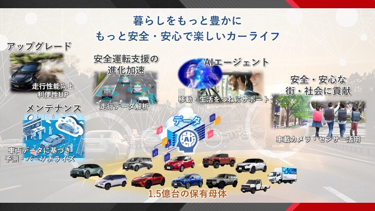 例えば、データに基づく車両開発・サービスの進化や、お客様とともに育つAIエージェント、車載センサーを活用したサービスなど、データとAIが生み出すSDVの多様な価値を具体化させていきたいと思います。