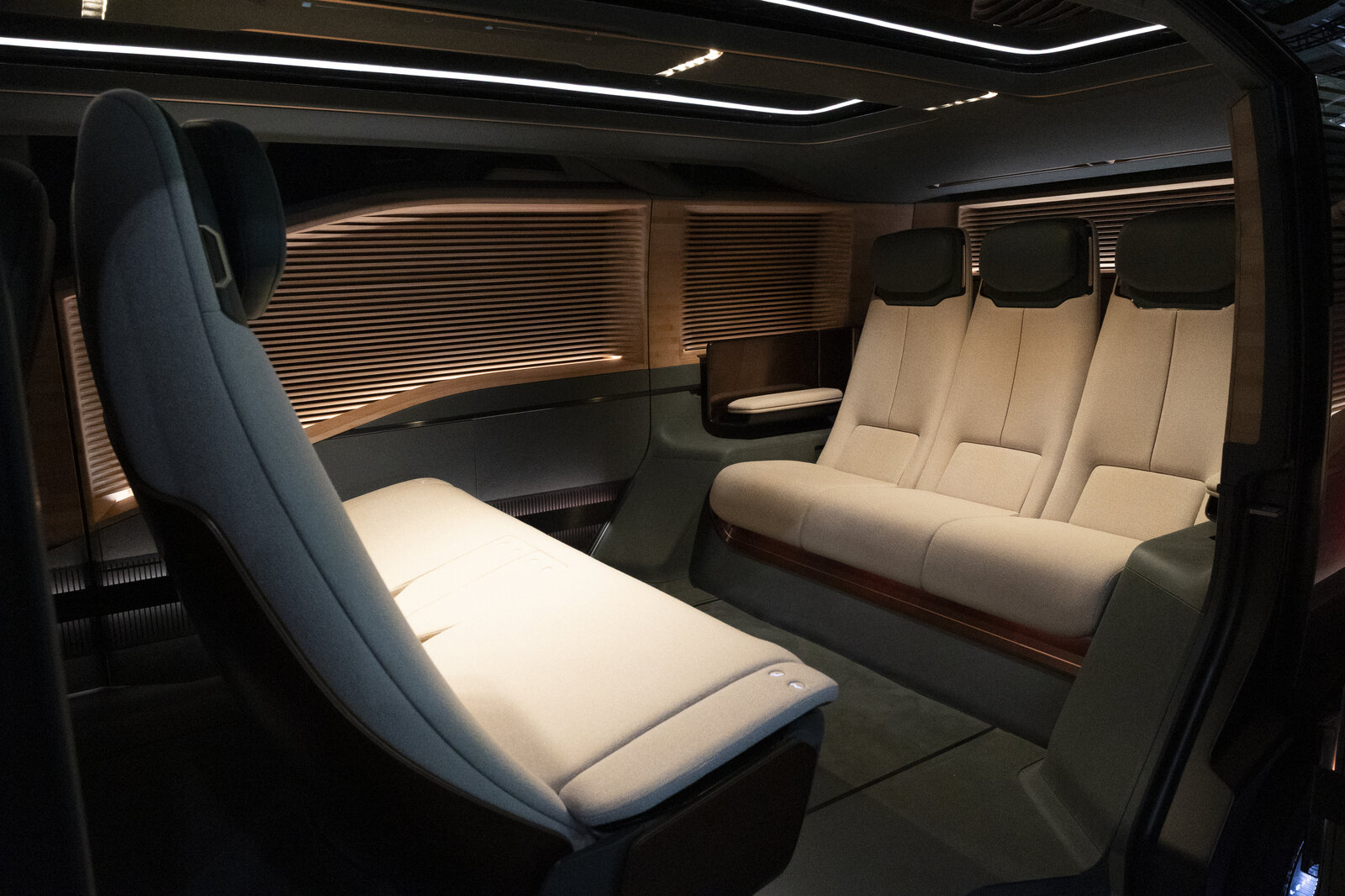 チーフエンジニアに開発背景を聞くと、室内空間を最大限に広げ、今までにない快適さを実現。乗り降りする際の所作が美しくなる設計を探求した結果、6輪にたどり着いたという。