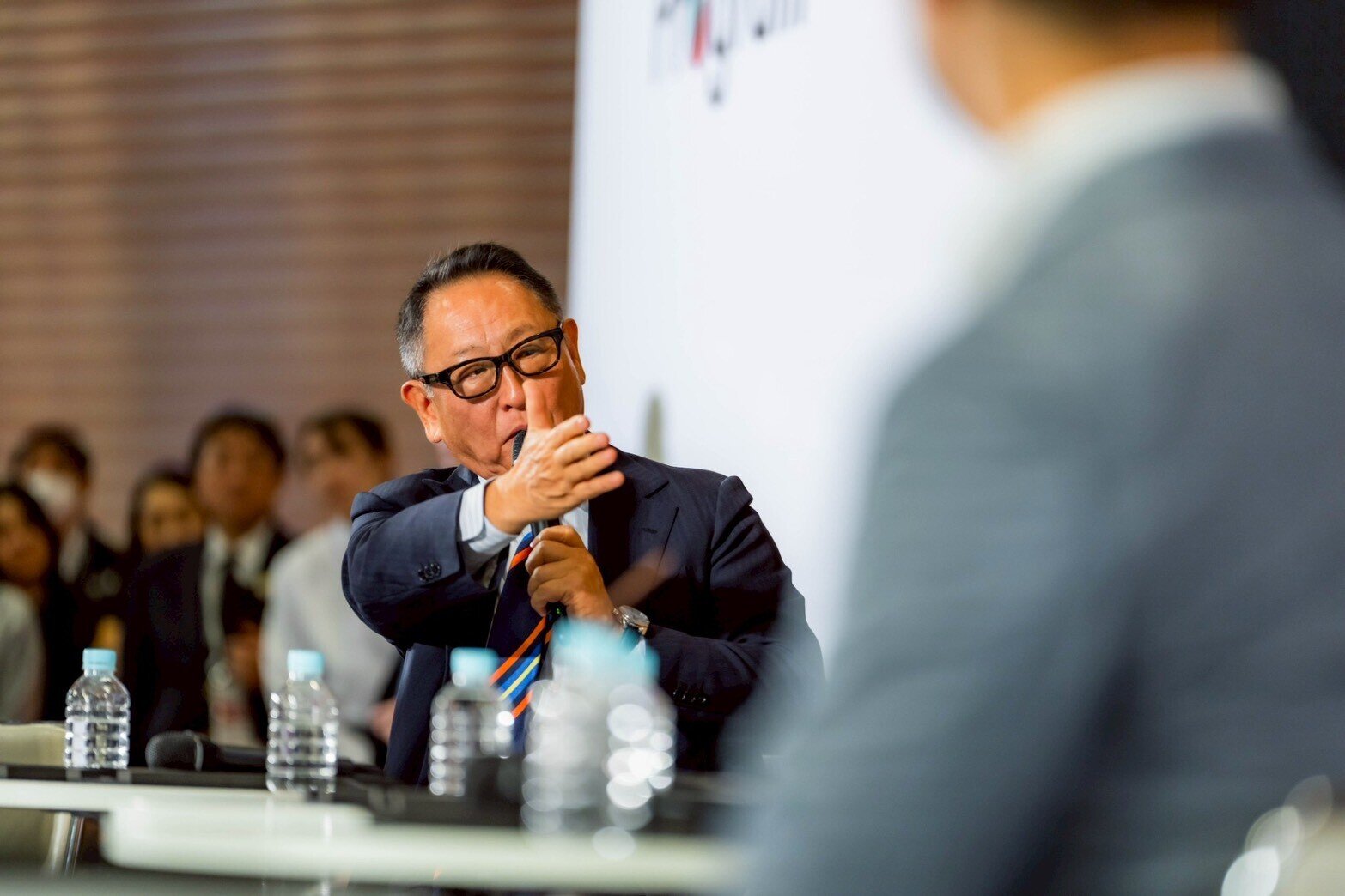 相談された当時を振り返り、豊田会長は「丸投げされました」とコメント。近藤会長がたじろぐ姿に、会場では笑いが起きた。