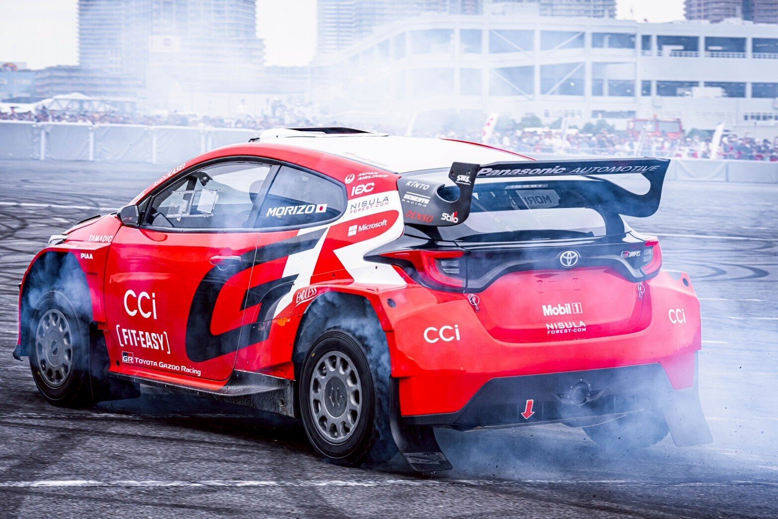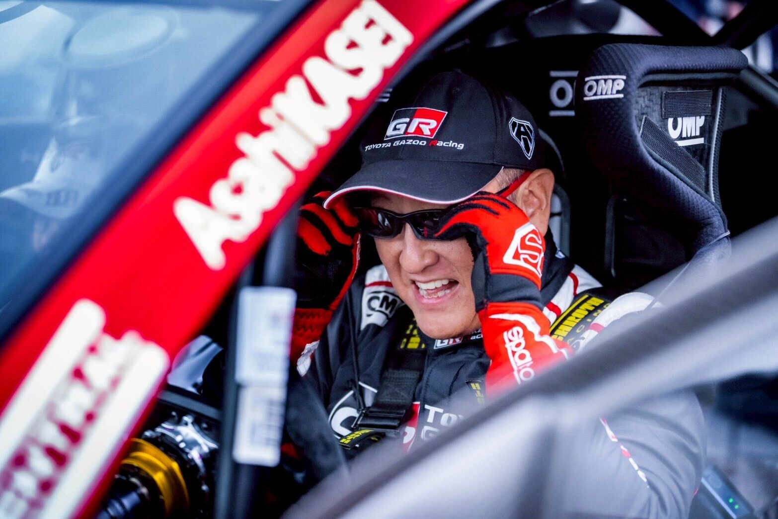 豊田会長がすぐさまスーツからレーシングスーツに着替え、モータースポーツの第一線を走るモリゾウとしてデモランを披露したのだ。