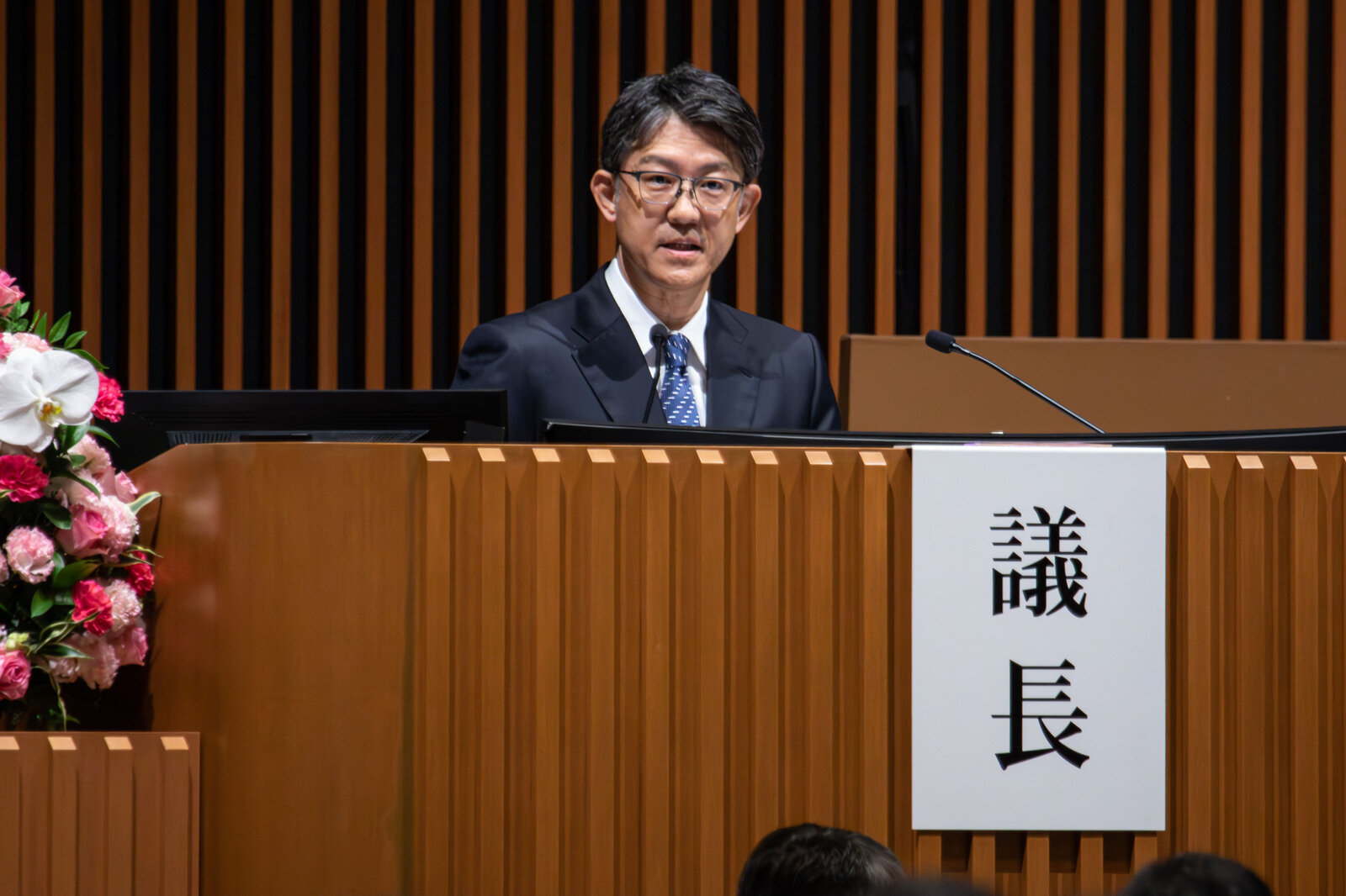 2025年の株主総会も終盤、佐藤社長に向けられた質問に答えた一幕だ。