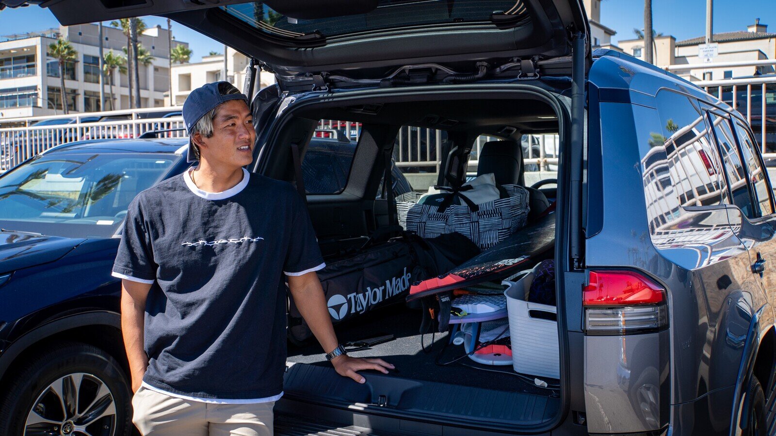 「クルマに乗ることは毎日のルーティン。クルマに乗った瞬間が、その1日がスタートしたという感じ」と話すカノア選手にとって、トヨタ レクサスの存在は特別なものだった。