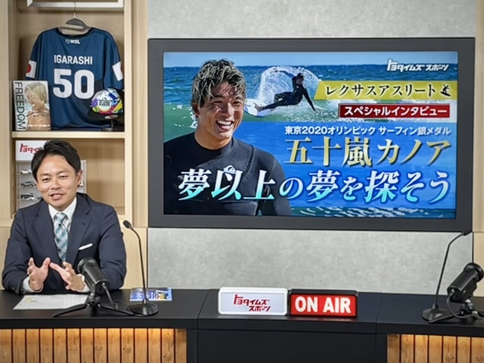7月25日のトヨタイムズスポーツは、東京2020オリンピック銀メダリスト、サーフィンの五十嵐カノア選手を特集した。
