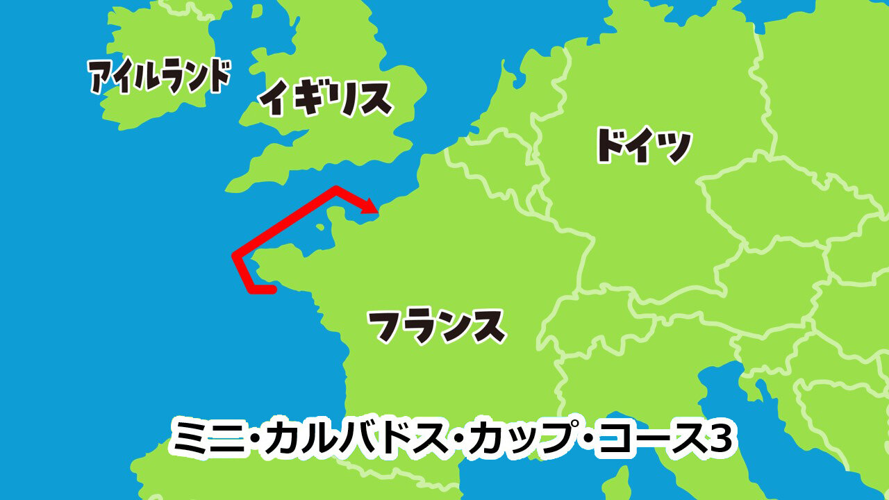 高原選手が3連覇した「外洋ダブルス日本選手権」は、和歌山市を出発し、紀伊半島をぐるっと回って愛知県の蒲郡市までの約370kmを、1日半から2日間くらいで走る行程。フランスで行われる「ミニ・カルバドス・カップ・コース3」(下図)は約900kmのコースで、昨年は高原選手が4日目にフィニッシュして3位に入賞したが、出場した18艘のうち完走したのは8艘だけという厳しいレースだった。