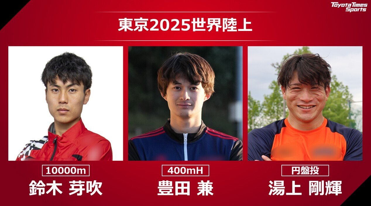 9月13日から国立競技場で開催されている「東京2025世界陸上」には、トヨタ自動車から鈴木芽吹選手、 豊田兼選手、湯上剛輝選手の3人が出場。いずれも世界陸上は初出場で、トヨタイムズスポーツのニュースリリースでも3選手のコメントが発表されている。