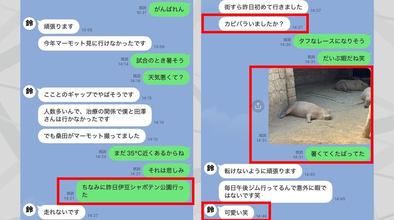太田選手が伊豆に行った時のLINEのやりとりなど、ほっこりしたエピソードも知れる鈴木選手の「#となり目線」は32:18から。