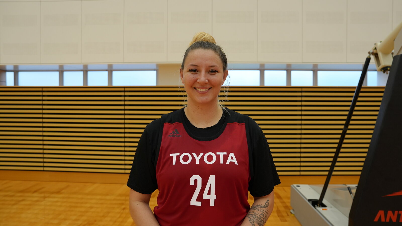 「さまざまなスタイルのバスケットボールを経験してきたからこそ、ここでそれを活かせるはずです。彼女たちと話し助け合いながら、彼女たちが私に教えてくれるバスケットボールと同様に、私の視点も理解してもらえると思います」と話しており、コートでは常に声を出してチームを引っ張っている。