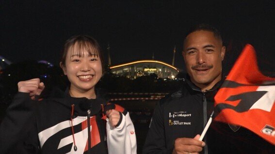このSSで初めて本物のラリーを体験したのは竹中アスリートキャスター。さらに元ニュージランド代表で、現在はトヨタヴェルブリッツに所属するラグビーのアーロン・スミス選手も加わった。
