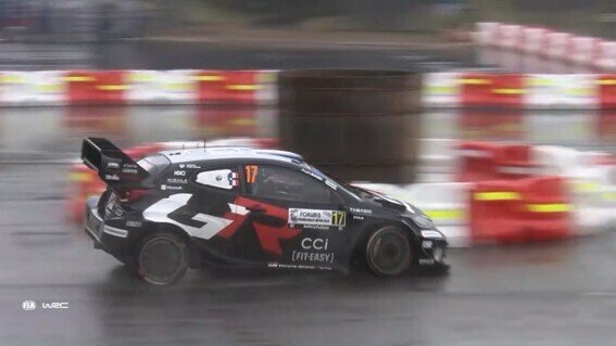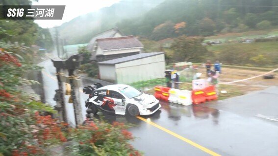 残念ながら勝田選手が優勝争いから脱落して迎えたラリー最終日は激しい雨。この日は「SS15/SS19額田」、熊野神社の前のT字路を駆け抜ける名物の「神社ンクション」で知られる「SS16/SS20三河湖」、「SS17/SS18岡崎SSS」と合計6つのステージを走った。
